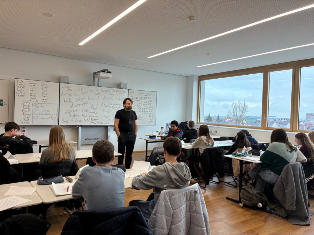 Anlässlich des 150. Geburtstags des Dichters Rainer Maria Rilke finanzierte das Haus der Heimat Stuttgart den Klassen 9 a-c jeweils einen Poetry Workshop mit Künstlern des Stuttgarter Vereins „Ausdrucksreich“. Dabei entstanden tiefgründige Gedichte und Texte.