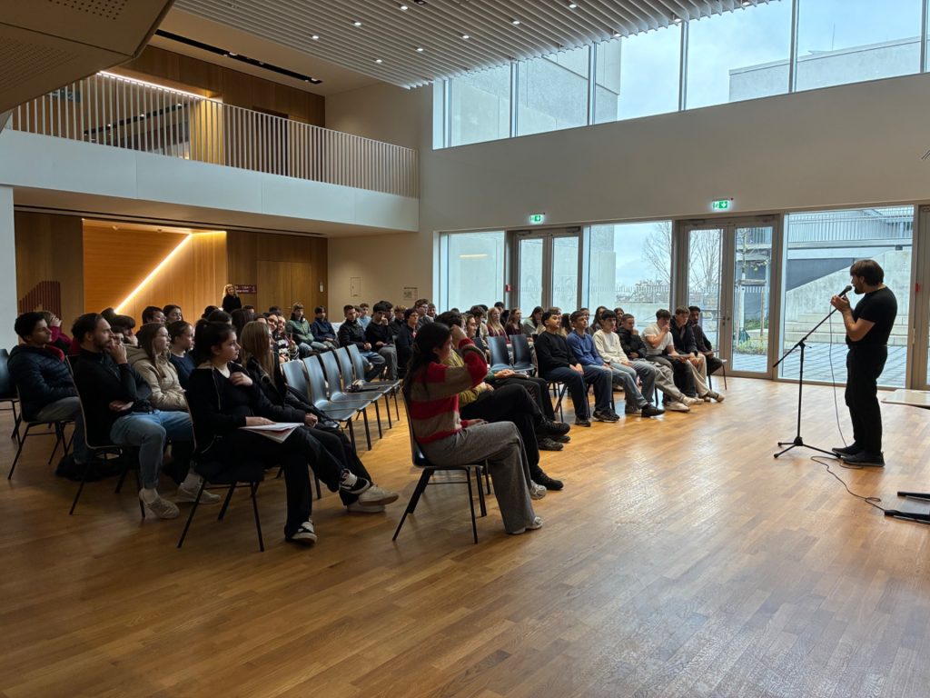 Einige Schüler trauten sich anschließend, ihre Texte in einem abschließenden Poetry Slam vor allen drei 9er Klassen in der Aula vorzutragen.
